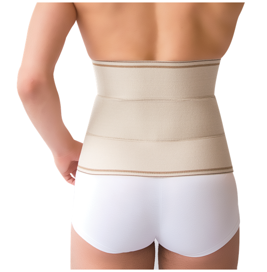 Ζώνη μετεγχειρητική τριών ελαστικών λωρίδων των 8cm. Σταθερή, με ανατομική εφαρμογή στη μέση. Η επιπλέον ενίσχυση των ελαστικών λωρίδων επιτυγχάνει τη σωστή επαναφορά. Αυτοκόλλητο κλείσιμο εμπρός με velcro. Συνολικό ύψος 24,50cm. Πλένεται.
