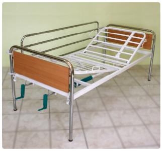 Νοσοκομειακό κρεβάτι νοσηλείας με 2 μανιβέλεςΔίσπαστο, σταθερού ύψους.Ανύψωση ποδιών και πλάτης με μανιβέλες.Eπιχρωμιωμένες μετώπες.Ρόδες διαμέτρου 100X32mm με φρένο (Προαιρετικά)Προστατευτικά πλαϊνά. (Προαιρετικά)