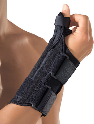 αποσπώμενη μεταλλική λάμα στον αντίχειρα, δυο πλαστικές μπανέλες και δυο δέστρες με Velcro για καλύτερη ακινητοποίηση.