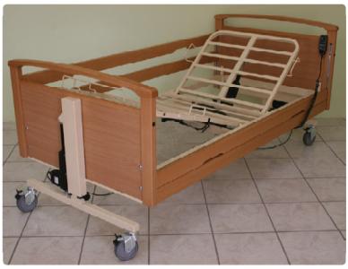 Κρεβάτι νοσηλείας ηλεκτρικό με ξύλινη επένδυση και ξύλινα πλαϊνάΔίσπαστο, Μεταβλητού ύψουςΑνύψωση πλάτης και μεταβολή ύψους ηλεκτρικά.Ανύψωση ποδιών χειροκίνητα με σκαλιέρα.Κλίση trendellenburg – antitrendellenburg, ηλεκτρικά.Ξύλινη επένδυση και πλαϊνά από ξύλο μασίφ.Ρόδες διαμέτρου 100X32mm με φρένο